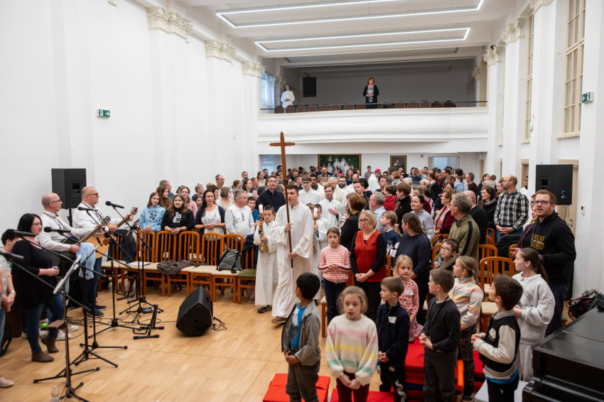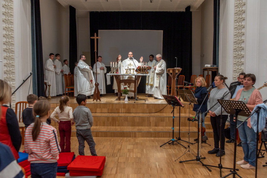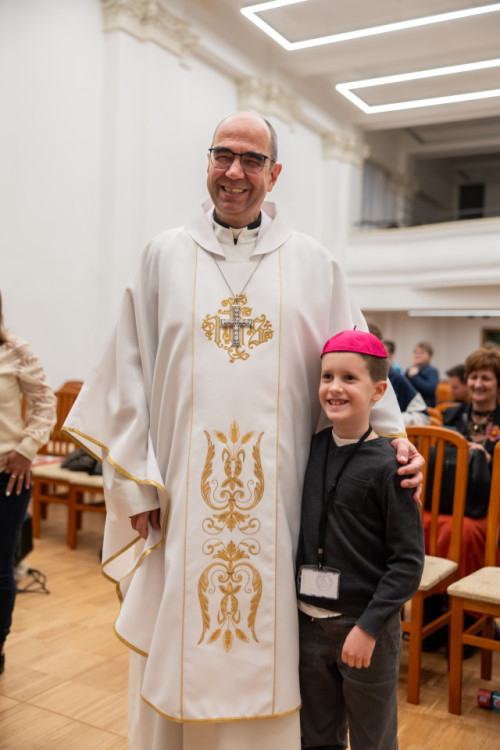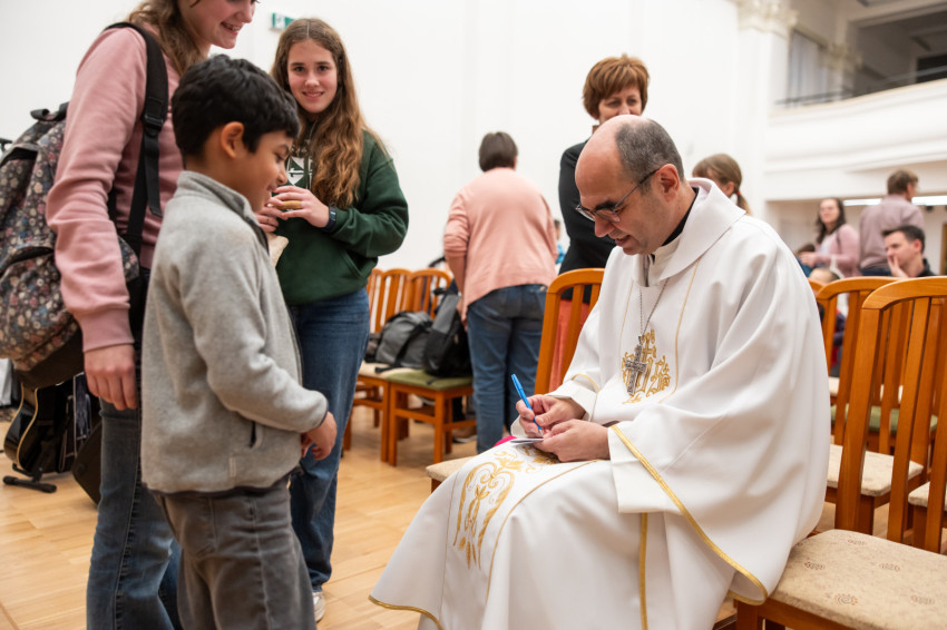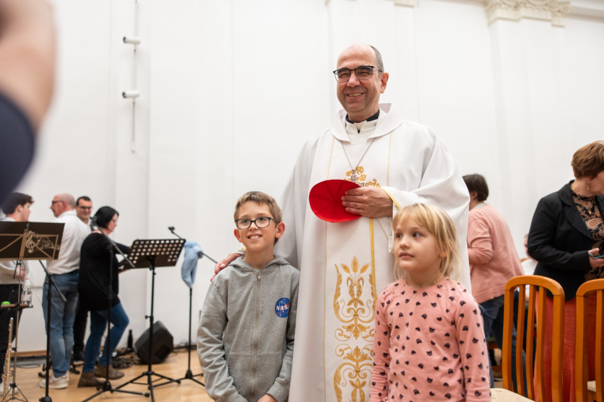 A családokat – kiemelten a gyerekeket – köszöntő főpásztor arra biztatott Krisztus Király ünnepének előestéjén, hogy „engedjük be életünkbe a kopogtató Jézus Krisztust, adjunk neki életünkben fő helyet, hogy ő legyen a forrás, a támasz számunkra”.