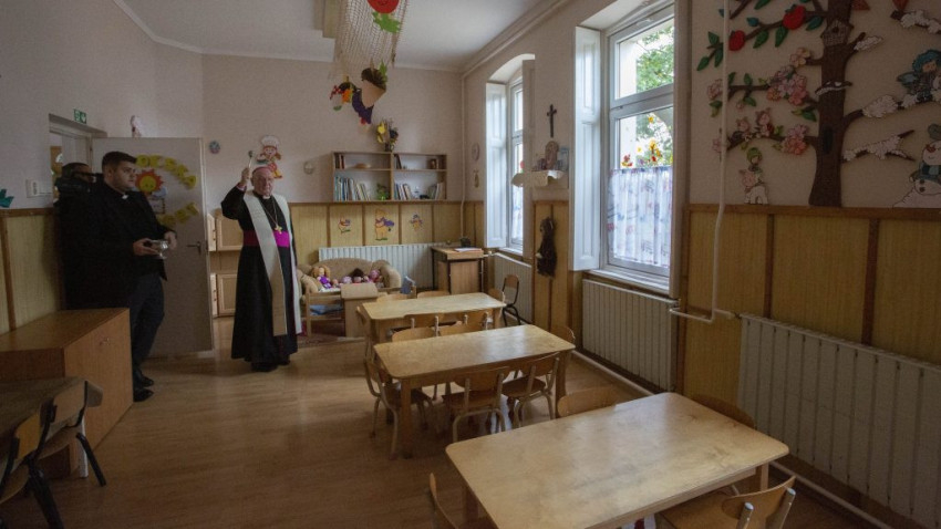 Az óvoda megáldása előtt Palánki Ferenc megyéspüspök megköszönte a gyermekeknek az imádságaikat és a nyírkércsi közösség bizalmát a katolikus intézmény választásában.