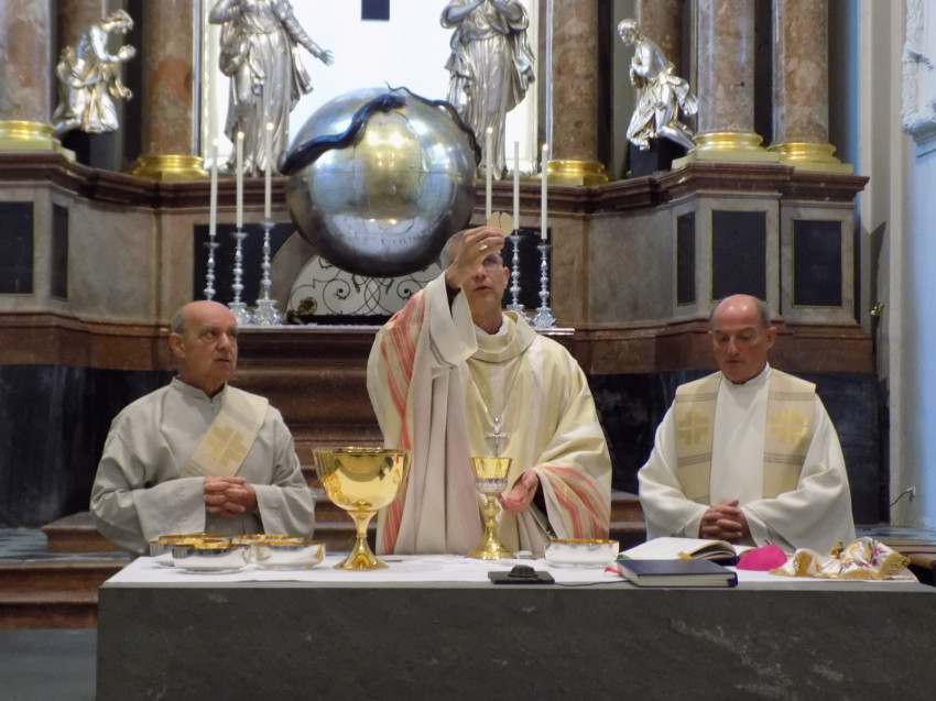 A zarándokokat a vendéglátók nevében Michael Staberl OSB prior köszöntötte: „Isten hozott benneteket Mariazellben. Szép, hogy éltetitek ezt a sok százados hagyományt. Eljöttetek Máriához, elhoztátok imáitokat, gondjaitokat, de a hálátokat is. A magyarok a 14. század óta járnak zarándokként Mariazellbe, 600 éve ez hozzátartozik a kegyhelyhez, itthon vagytok itt. Kívánom, hogy áldott emberekként térjetek haza, reményt és erőt merítve a közös imából és hálaadásból.”