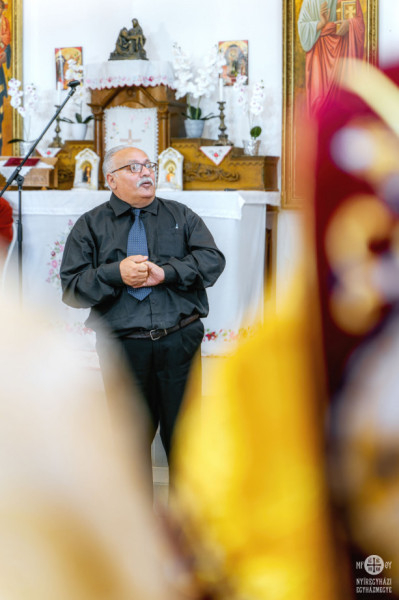 „Amikor 1995-ben felépült ez a templom, mindenki tudta, hogy még nem teljes, hogy egy templom akkor lesz azzá, amikor ikonosztázion ékesíti” – mondta köszöntőjében Kanyó Árpád oldallagos adminisztrátor házigazdaként a búcsúi Szent Liturgián.