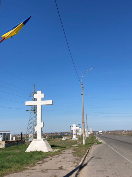 Monumentális építmény fogadott minket, ez nagyon jellemző Ukrajnára. Korábban a Szovjetunió dicsőítését szolgálták, most áthangolták őket, és Ukrajna dicsőségét hivatottak tanúsítani. Oroszul olvasható a városfelirat. Igen, itt oroszul beszélnek az emberek. Kényszer ukránul tanulni, az időseknek ez elég nehéz. Sok olyan emlékmű van, ami kifejezi az ukrán kötődést. És sok az ortodox kereszt is.