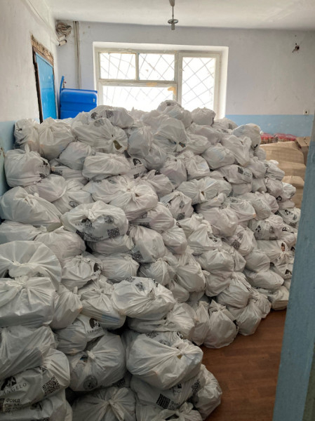 Ide jönnek az emberek az önkéntesek által összeállított csomagokért. Higiéniai cikkeket és tartós élelmiszert, gyógyászati eszközöket, ruházatot vittünk. Hetente több száz csomagot osztanak ki.