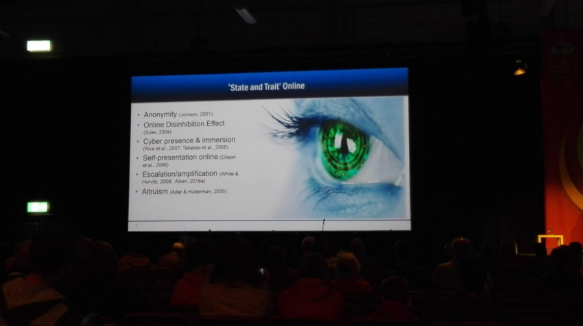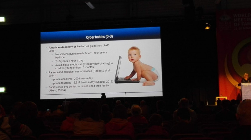 A technológia negatív hatásaival kezdte előadását – azért a problémákat emelve ki, mert piaci szereplők hada mindent elkövet, hogy úgy állítsa be: a technológia és annak fejlődése kizárólag jó. A kiberpszichológus feladata azonban az egyensúlyteremtés; ő maga abszolút technológiapárti, ugyanakkor vitathatatlan, hogy az emberi viselkedés megváltozik online. Hogyan hat a technológia a fejlődésben lévő gyerekekre; milyen problémákkal szembesülnek a családok, és ezeknek milyen megoldási módjai lehetnek – erről beszélt előadásában.
