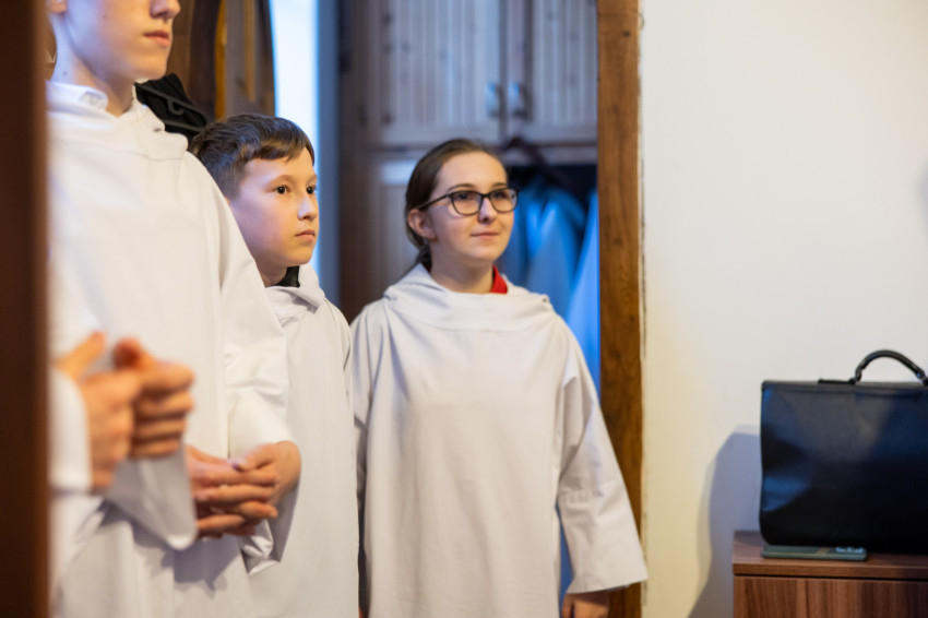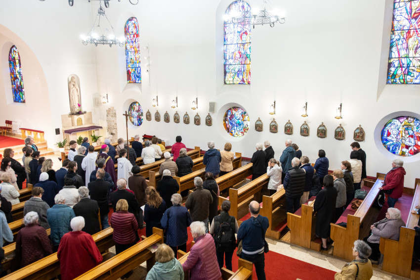 A keresztutat követő szentmise különleges erővel közvetítette a Plébániai Unió egységét. A főcelebráns püspököt és a három koncelebráló papot ministránsok hosszú sora kísérte.