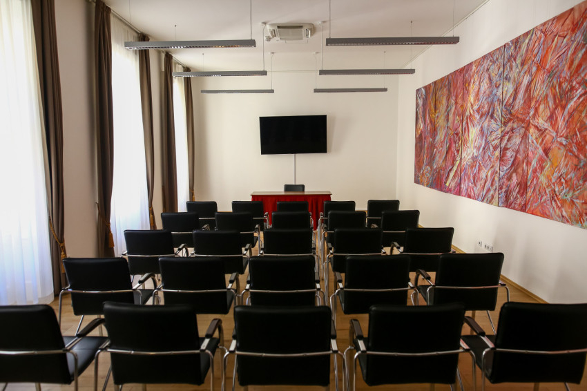 Természetesen az étkezés is megoldott: az Esztergom terem előtt található aulából tágas lobby bár nyílik, amelynek berendezését mindig az adott rendezvényhez igazítják.