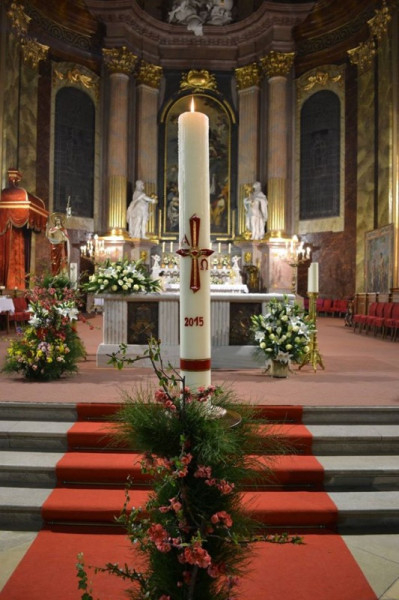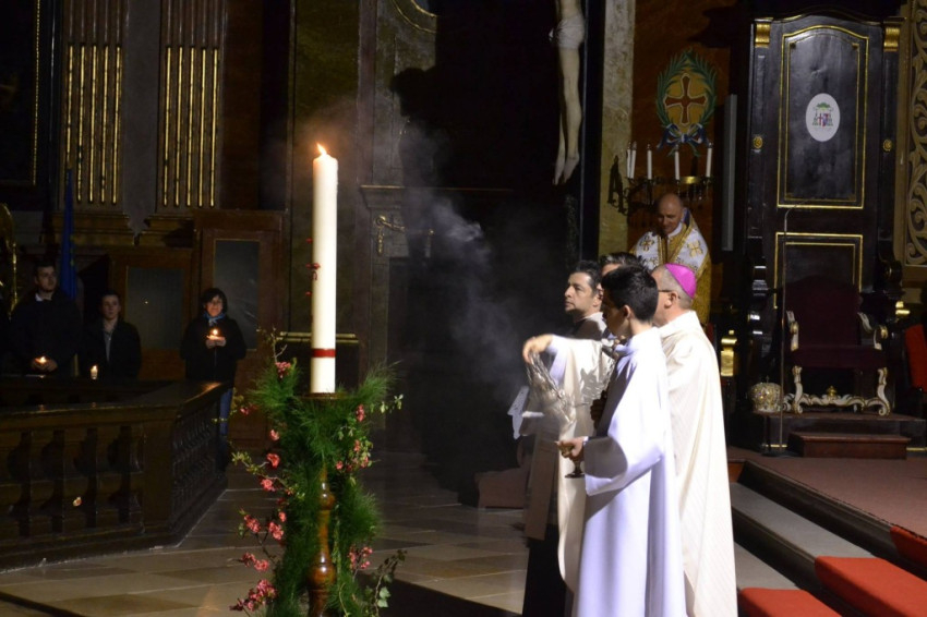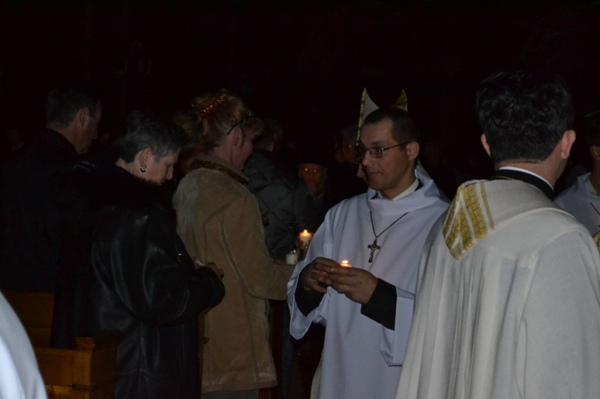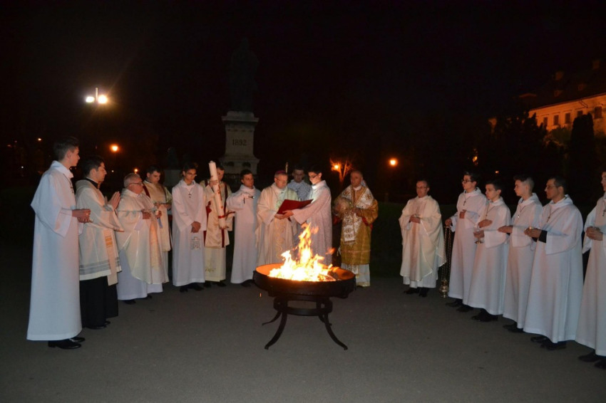A szertartás kezdetén a székesegyház előtti téren egyedül a parázsló szén világított, s az arról vett tűzzel gyújtotta meg Böcskei László a húsvéti gyertyát. Ezután a papság és a hívek az égő gyertyával, mely az élő Krisztust jelképezi, bevonultak a bazilikába. A fényünnepség kiemelkedő része volt a húsvéti öröm meghirdetése az Exsultet eléneklésével.