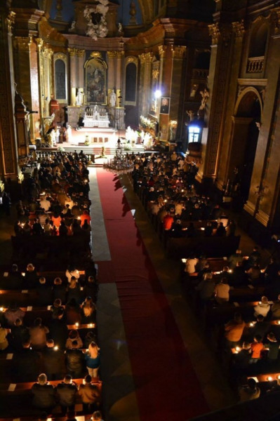 Az ünneplők az üdvtörténet nagy állomásainak felidézésével Isten hűségére emlékeztek, aki nem hagyta el népét, hanem előkészítette és megvalósította az emberiség megváltását. A Gloria felcsendülésével a húsvéti öröm jeleként kigyúltak a székesegyház fényei, megszólalt az orgona, zúgtak a harangok és a csengők.