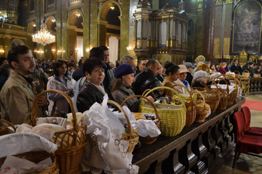 A hagyományokhoz híven a mise után következett a feltámadási szertartás, vagyis a feltámadás örömhíréről való tanúságtétel. A szertartás a szentsírnál kezdődött egy zsoltár eléneklésével, majd a főoltártól indult a körmenet. Ezt követően, a szertartás végén megáldották az ételeket.