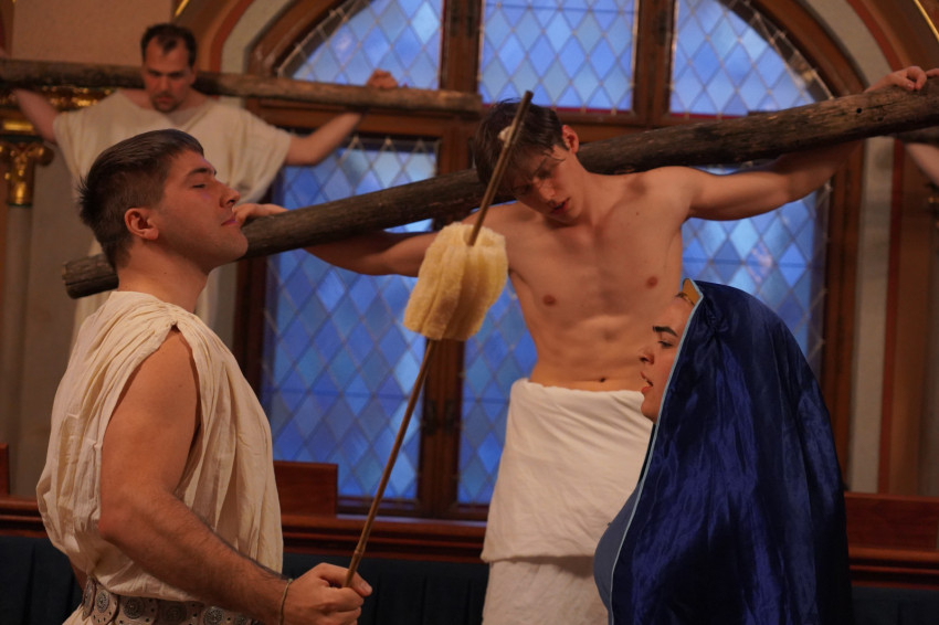A kétfelvonásos misztériumjáték a teljes húsvéti ünnepkör tartalmát és eseménysorát felelevenítette: nemcsak Jézus Krisztus szenvedéstörténetének egyes részeit, hanem a feltámadásához kötődő eseményeket is bemutatta a híres 18. századi csíksomlyói ferences misztériumjátékok szövegeinek felhasználásával. Az előadást magyarországi forrásokból származó gregorián énekek, közösen és szólóban énekelt népénekek egészítették ki.