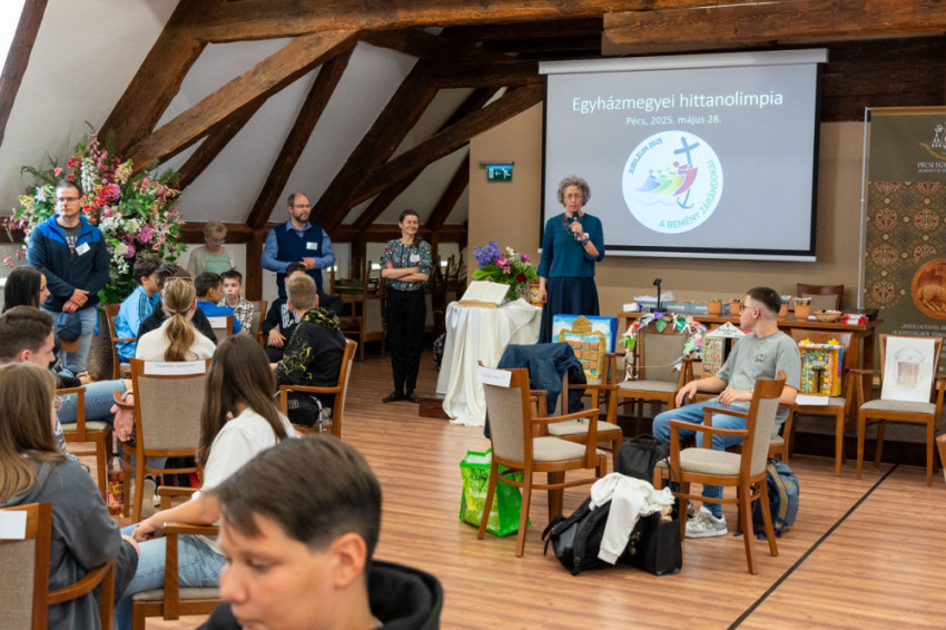 A döntő programját úgy állították össze, hogy a megmérettetésen túl imádság, beszélgetés és éneklés is legyen benne. Közös énekléssel átvonultak a székesegyház déli kapuján. Együtt imádkoztak, és meghallgatták egymás gondolatait a szentévben megélt élményeikről – mondta el Sipos Edit, a pécsi Egyházmegyei Hivatal hitoktatási munkatársa, a verseny főszervezője.