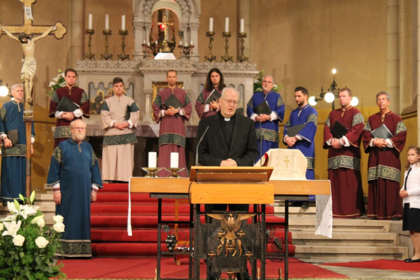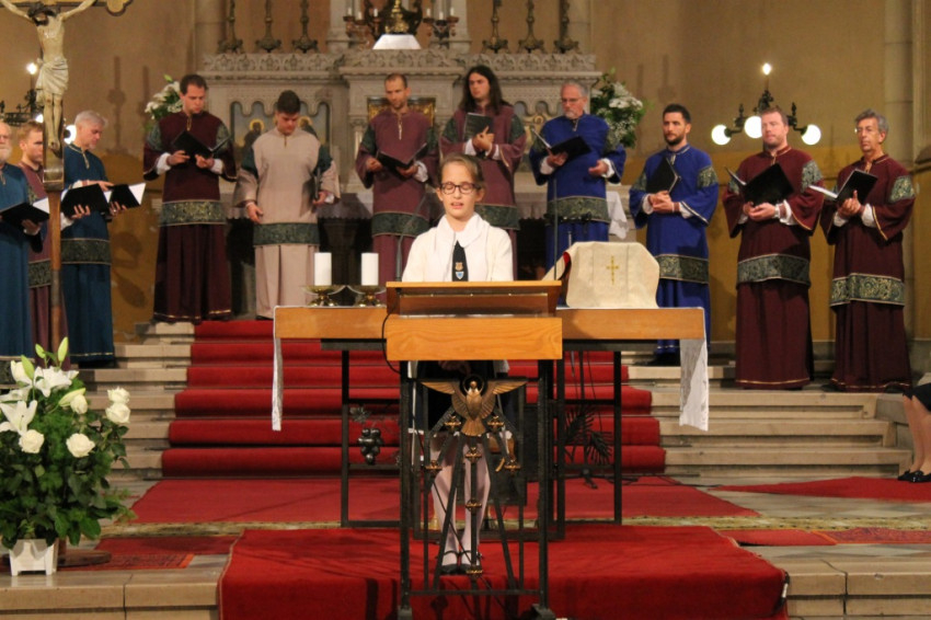 Az Assisi Szent Ferenc-plébániatemplom csodálatos belső terében megvalósult hangáhítat keretében a Patrona Hungariae Iskolaközpont diákjainak közreműködésével tucatnyi különféle nyelven hangzott el az Úr imája: a keleti (szír, grúz, örmény, arámi, görög, cigány, szerb, ukrán) és a nyugati (angol, francia, lengyel, magyar, német, spanyol, román, szlovák) liturgikus hagyomány szerint, valamint nagy zeneszerzők (Liszt, Csajkovszkij, Palestrina, Schubert, Tallis) feldolgozásai és motettái formájában.