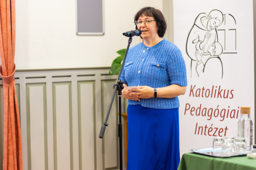 A Katolikus Pedagógiai Intézet igazgatója, Barcsák Marianna a konferencia megnyitása után köszöntötte őt, méltatva a sok éven át végzett odaadó és szakmailag igényes munkáját, amelynek sziklaalapjára támaszkodhat a 21. század új kihívásaihoz igazított képzési metódus.