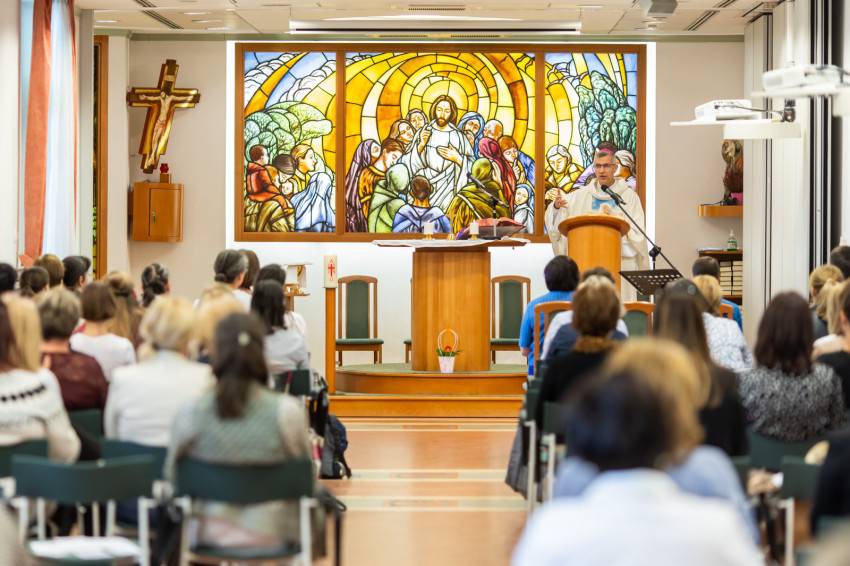 A konferencia lezárásaként hálaadó szentmisén vehettek részt az óvodapedagógus kollégák, amelyet Martos Levente Balázs esztergom-budapesti segédpüspök, a Központi Papnevelő Intézet rektora celebrált. A szentmisén a délelőtti programban megismert Gyombolai Bálint vezette az énekeket, gitáros játékával segítve a résztvevők lelki elmélyülését, emelve a liturgia szépségét. Martos Levente Balázs homíliájában a napi igerészek magyarázata mellett saját óvodai emlékeit is elmesélte, megerősítve a jelenlevőket abban, hogy mennyire fontos a munkájuk.