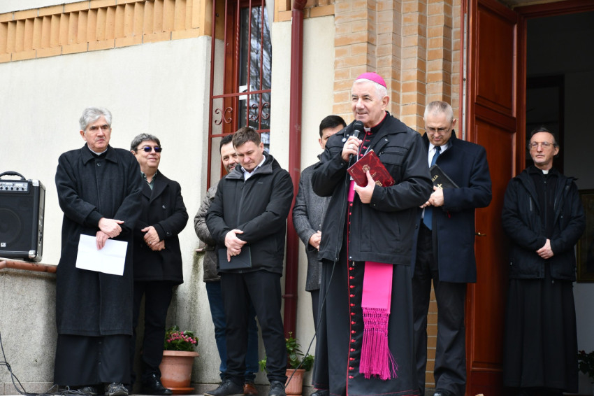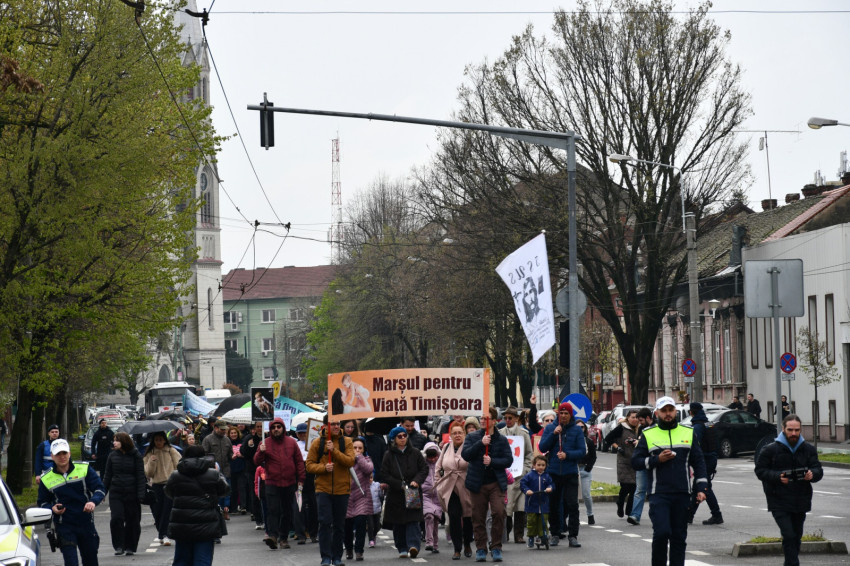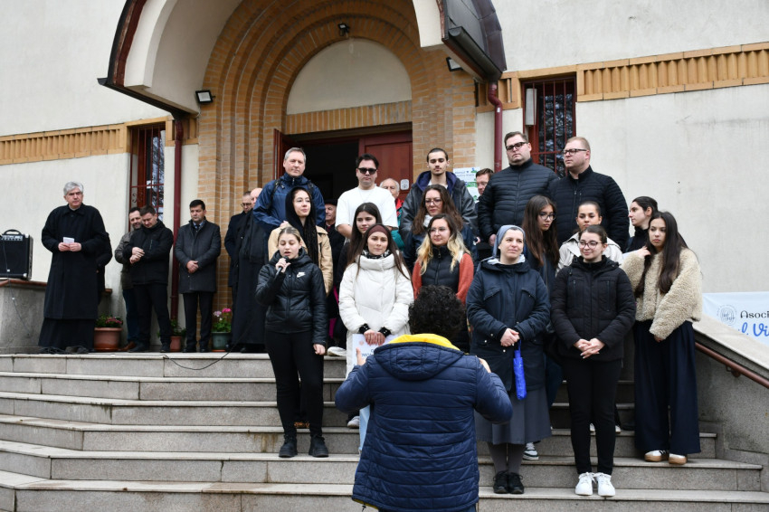 Mielőtt elindultak volna a Bega-parti város utcáin, sokan részt vettek a 10 órakor bemutatott szentmisén, amelyet a Szűz Mária, a Béke és Egység Királynője görögkatolikus templomban tartottak. Ezt követően beszédek hangzottak el, a meghívottak a templom lépcsőiről szóltak az egybegyűltekhez.