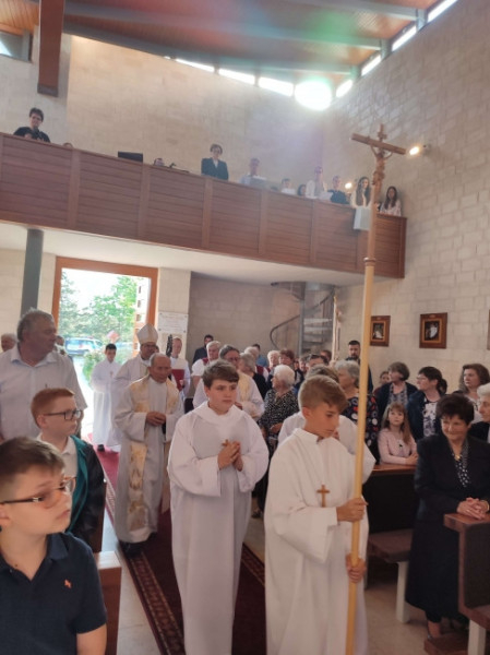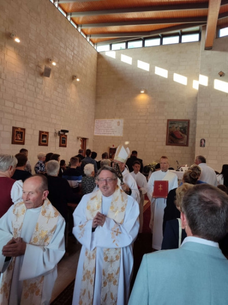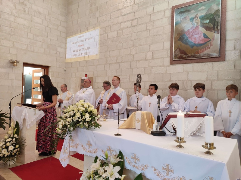 Hernádi László plébános és a község lakosságának összefogásával, valamint Keszthelyi Ferenc akkori megyéspüspök támogatásával húsz éve épült fel a Gereben Gábor Ybl-díjas építészmérnök által tervezett Kisboldogasszony-templom, amelyet ezen a jubileumi ünnepen mintegy 230 tanulóval és nevelőikkel megtöltött a közeli Kolping Katolikus Általános Iskola.