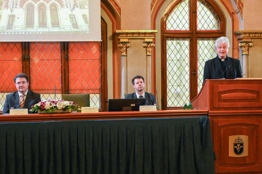 „Egyesek katolikus hívőként, értelmiségiként, tudósként dolgoznak az egyetemen. Másoknak éppen ez a hely kínálkozott munkahelynek, s elsősorban a tudomány szeretete miatt vannak itt. Ismét másokat a kíváncsiság vezetett, végül vannak olyan munkatársaink is, akik véletlenül itt találtak munkahelyet, s mert megtetszett nekik, ezért szívesen időznek közöttünk.” A rektor hangsúlyozta: a Katolikus Egyház toleráns magatartását bizonyítja az is, hogy „a különböző fölfogású személyek egy fedél alatt, együtt tudnak dolgozni”.