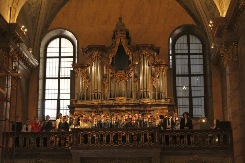 A szentmise után is a Richter teremben folytatódott az ünneplés. A diákok előadásában elhangzott Nagy Gáspár Symphonia Ungarorum versciklusa, melyet Szokolay Sándor oratorikus szimfóniájához írt. A mű Szent István és Szent Gellért dicsőségéről szól, így a versrészletek között a tanárokkal megerősített énekkar is a két szentről szóló népénekeket és miserészleteket adott elő Csorba János vezényletével. Eközben a kivetítőn peregtek az iskola negyedszázadnyi múltjának képei.