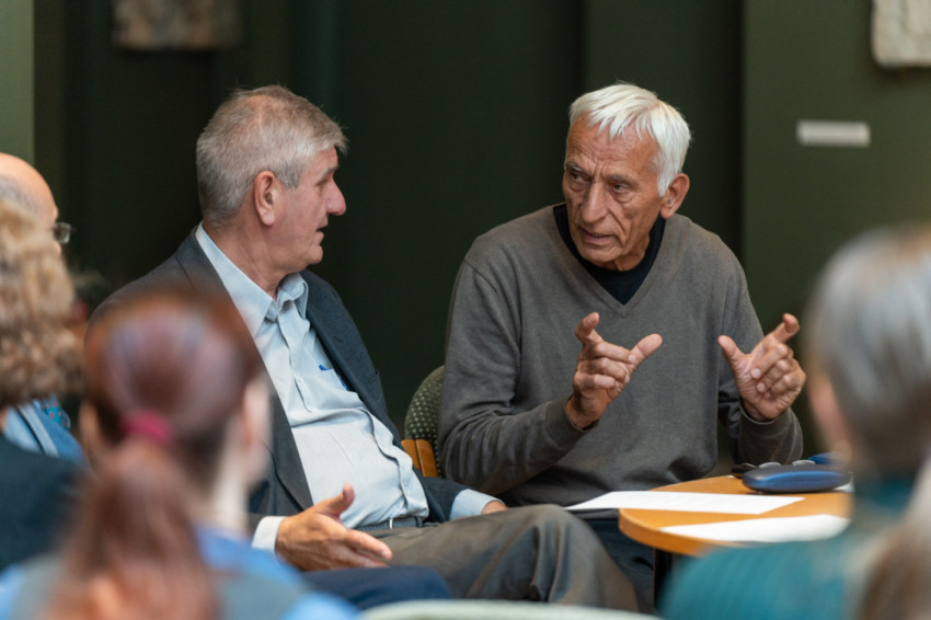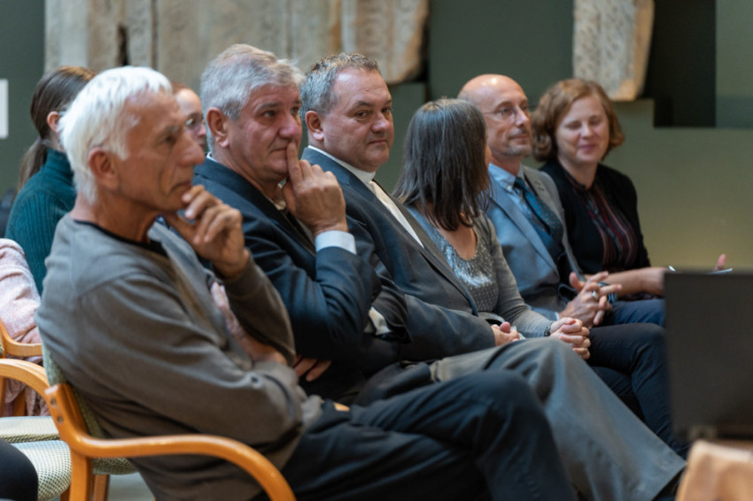 A beszélgetésen részt vett Felföldi László pécsi megyéspüspök, Havasi Krisztina, a Bölcsészettudományi Kutatóközpont Művészettörténeti Intézetének tudományos munkatársa, Osgyányi Vilmos kőszobrász, restaurátor művész, Raffay Endre művészettörténész és Takács Imre, az ELTE BTK Művészettörténeti Intézetének tanára, valamint Orbók Emőke, a Pécsi Egyházmegye turisztikai csoportvezetője.