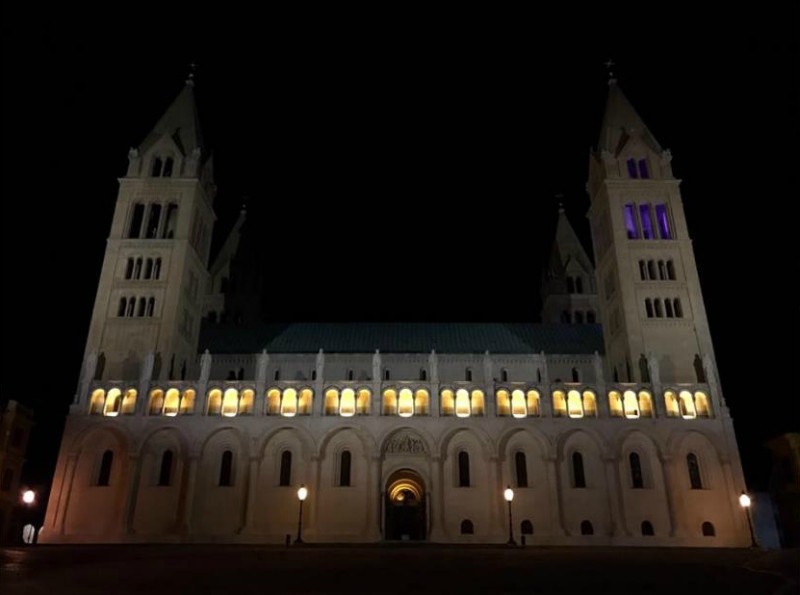 A székesegyház adventi díszvilágítása, ha működik a vezérlés, az adventi koszorú gyertyáinak színeit követi. Az előkészület időszakának első két vasárnapján a bűnbánati jellegre utaló viola (lila) színű megvilágítás a visszafogottságra, megtérésre és a bűnbánatra indít. Advent harmadik vasárnapján már előretekintünk az ünnep közeledtére, elővételezzük a karácsony örömét, egy kissé enyhítünk a bűnbánati szigorúságon – erre utal a harmadik torony rózsaszín megvilágítása, amely a lila szín világosabb árnyalataként jelenik meg, és tudatosítja bennünk az adventi készületi idő valódi okát. Advent negyedik vasárnapján, mint egy adventi koszorú, immár teljes pompájában világít mind a négy torony, melyek közül a negyedik szintén lila színbe burkolózva jelzi a karácsony közeli beköszöntét, az Úr Jézus születésének ünnepét.