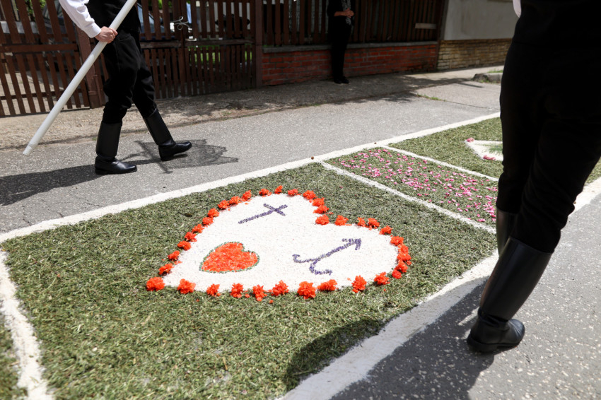 A pilisvörösvári helytörténész elmondta, hogy a korábbi szokásoknak megfelelően – többek között az általa vezetett Sváb Sarokban – szombaton most is készült úrnapi csokor kilenc virágból. A kilenc virág arra utal, hogy az Úr Jézus kilenc hónapig volt Szűz Mária méhében.