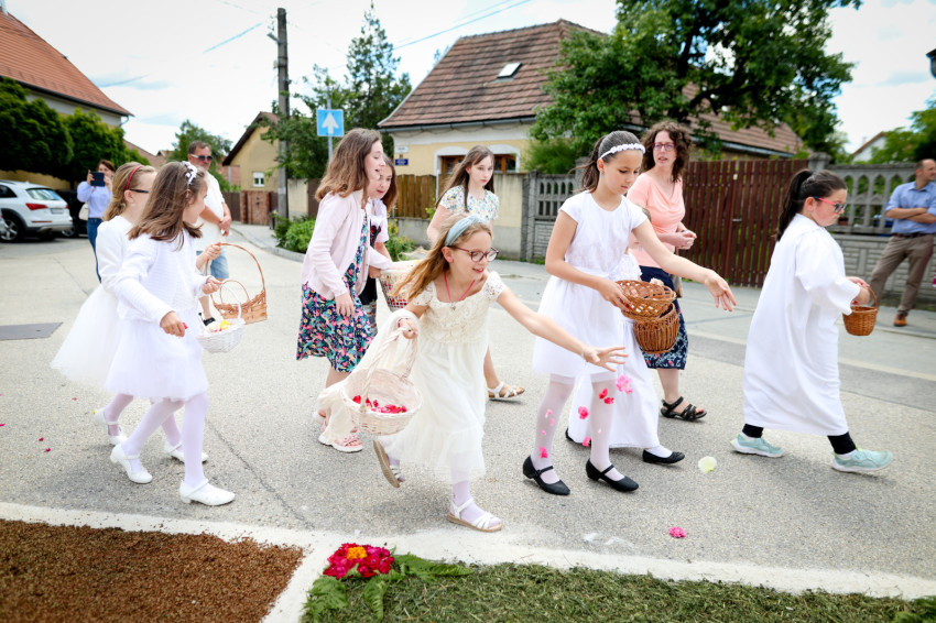Egyesek, akárcsak régen, koszorúba kötve viszik az úrnapi körmeneten, mások hagyományosan a karjukra fektetve.