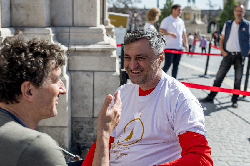 Csatlakozott a veresnyzőkhöz Hegyi Barnabás karnagy – stílusosan szmokingban – és Gerhes Bence ötödéves papnövendék is.
