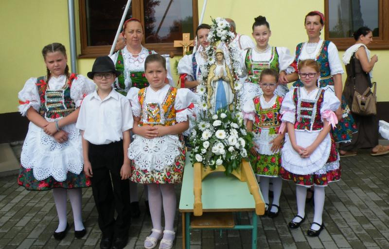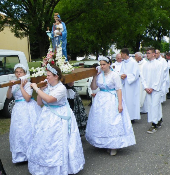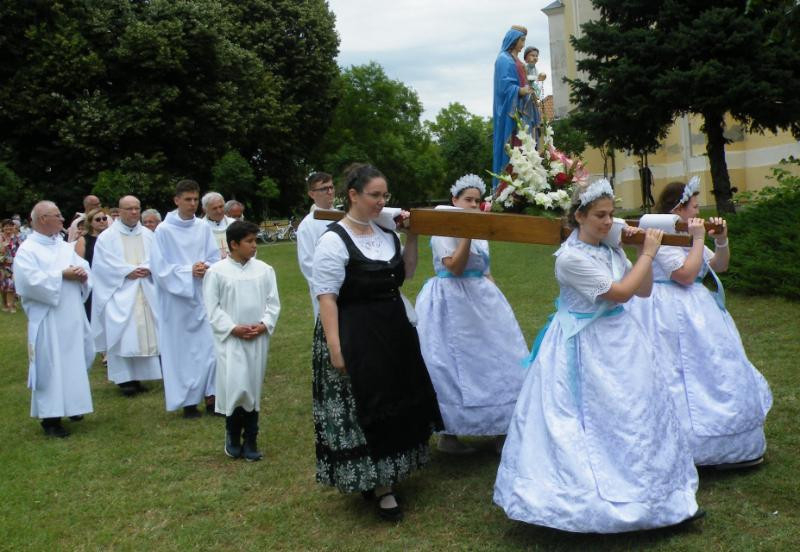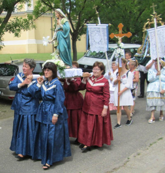 A szentmisét követő körmenet során a szobrok hordozói, a szép számban megjelent hívek a Vaskúti Kraul Antal Ifjúsági Fúvószenekar zenei kíséretében, Huzsvay György és Vörös Csaba vezényletével a templomteret megkerülve tértek vissza az áldásra. A körmenet és a Mária-énekek az összetartozás érzését erősítették a hívekben.