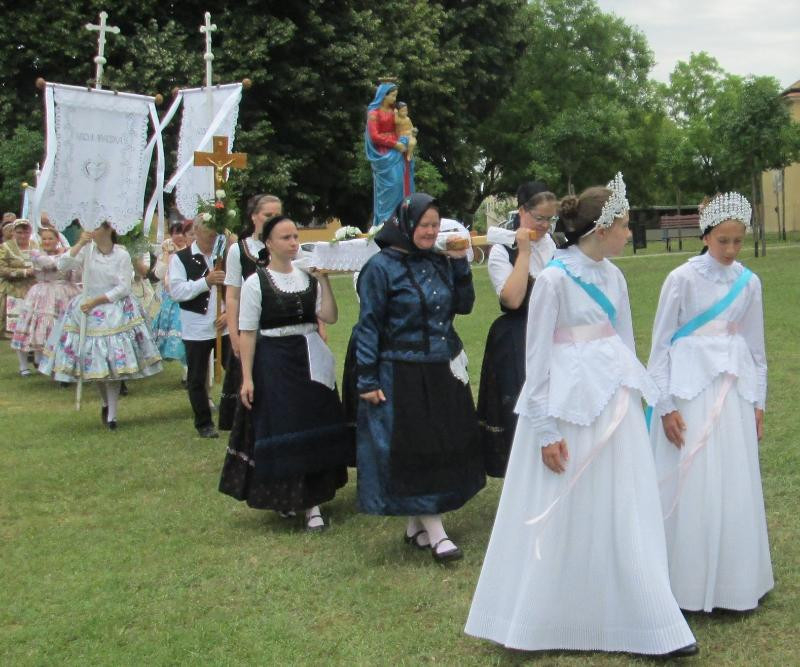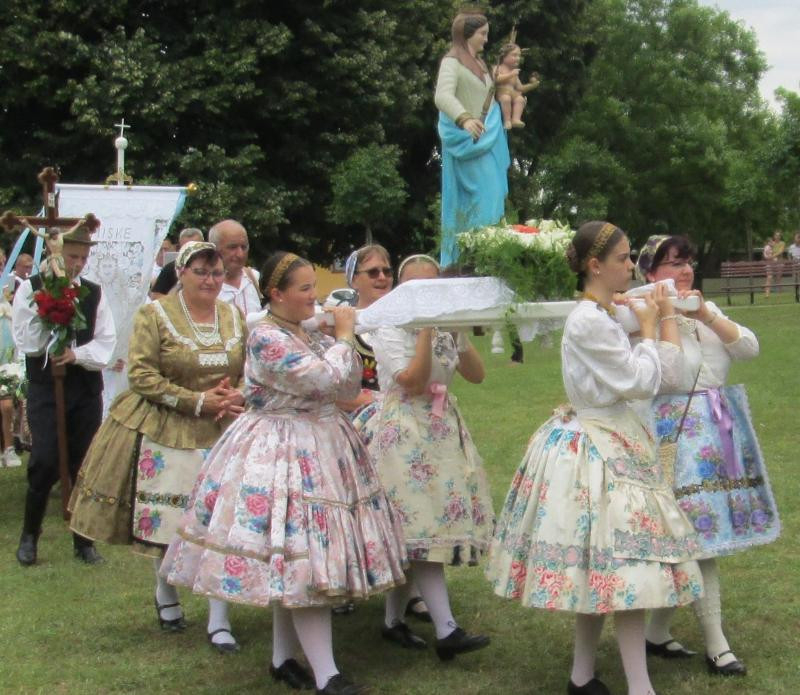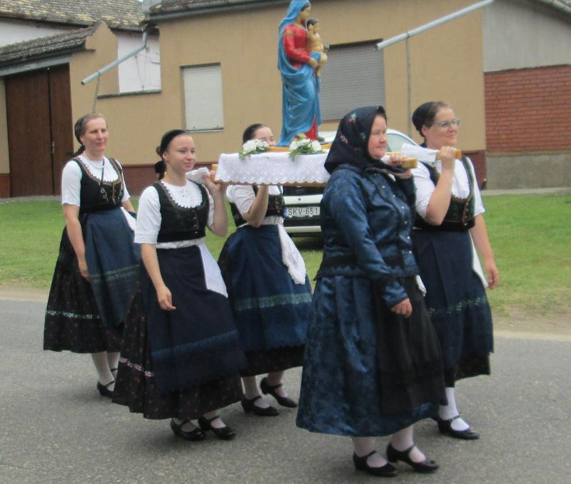 Felső-Bácska települései, Bácsbokod, Csátalja, Drágszél, Dunafalva, Gara, Miske, Nagybaracska, Nemesnádudvar, Sükösd és a házigazda Vaskút lányai és asszonyai, fiai és férfiai a különböző nemzetiségek népviseleteibe öltözve hozták el római katolikus templomaik szalagokkal és virágokkal ékesített hordozható Mária-szobrait.