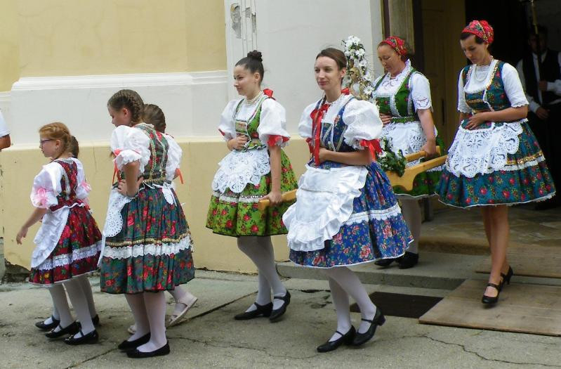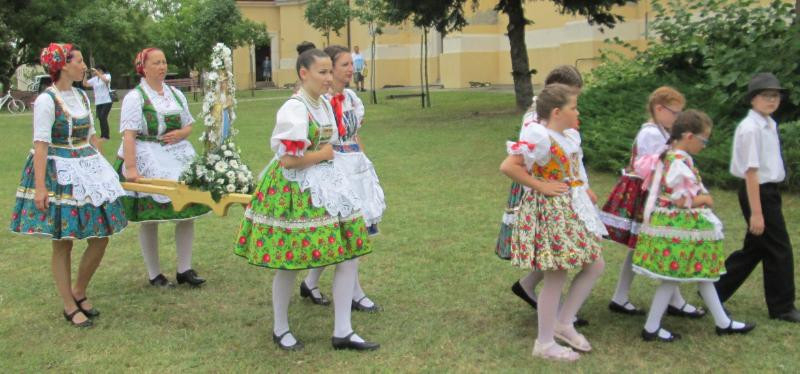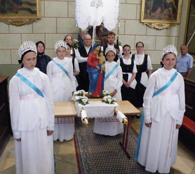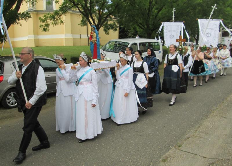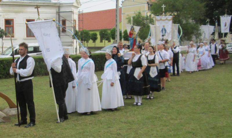 Régi hagyomány jelentős katolikus ünnepeken, körmeneteken hogy a népviseletbe öltözött „máriás lányok” énekelve, imádkozva, vállukon vitték templomuk Mária-szobrát, kérve Szűz Mária közbenjárását, hogy a Jóisten védje meg településüket minden bajtól, betegségtől, természeti csapástól.