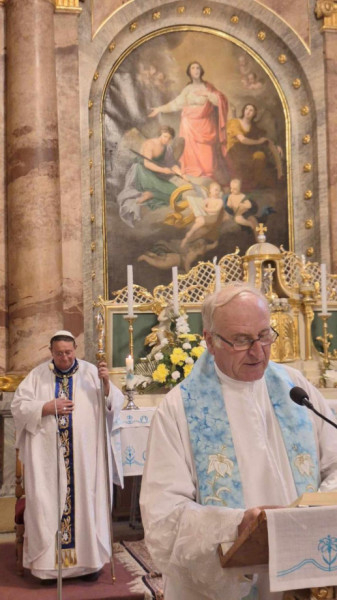 Szívhez szóló, tartalmas szentbeszédében az apát felidézte az erdélyi Mária-ének szavait: „Édesanyánk, hozzád jöttünk, lángadozva, mert szeretünk, ó Szűz Mária”, és kiemelte, milyen fontos a Szűzanyához való gyermeki ragaszkodás.