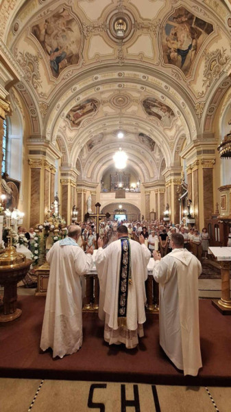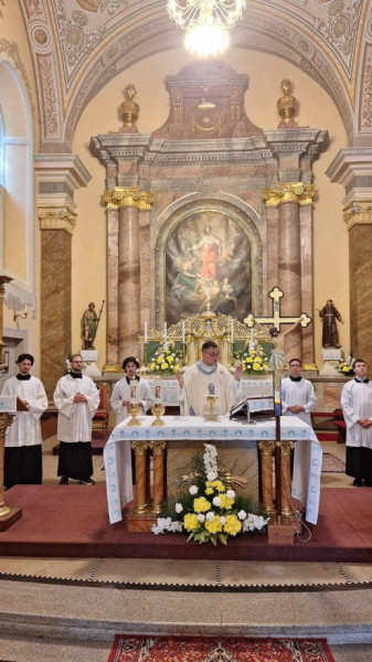 A délután csúcspontja az ünnepi szentmise volt, amelyet idén Fazakas Zoltán Márton csornai premontrei apát mutatott be, oltártestvéreivel együtt, a zarándokok által zsúfolásig megtelített kegytemplomban.
