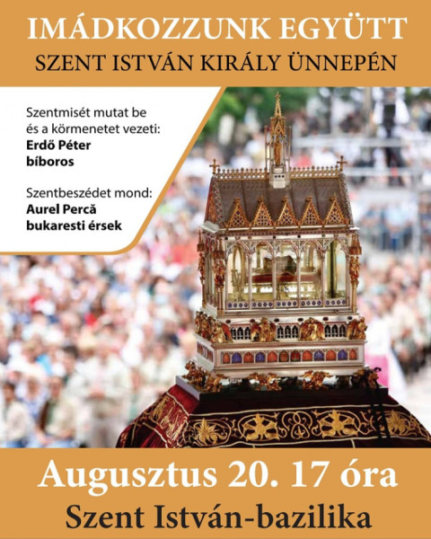 A szentmisét bemutatja és a Szent Jobb-körmenetet vezeti Erdő Péter bíboros, szentbeszédet mond Aurel Percă bukaresti érsek.