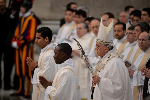 „Hogy álltok a fáradtsággal?” – kérdezte Ferenc pápa paptársait, a krizmaszentelési misén nem sokkal azelőtt elhangzott beszédére utalva.