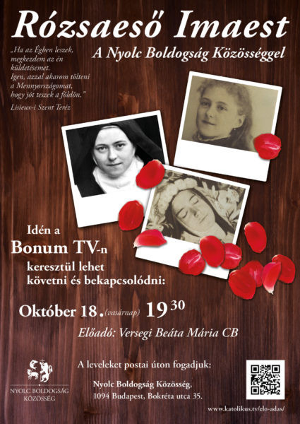Ezért október 18-án, vasárnap 19.30-tól online imaestet tartanak, melybe a Bonum TV-n keresztül kapcsolódhatnak be televízión vagy online EZEN a címen.