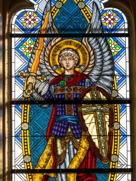 Részben elkészültek a Szent Mihály-főszékesegyház új színes üvegablakai is. A beruházás első fázisában elvégzett művészettörténeti kutatások kimutatták, hogy több, öt-hat különböző stílusú üvegablak volt az épületben. Az eredeti, Waltherr Gida által készített Szent Mihály-ábrázolás a II. világháború során súlyosan megrongálódott, melynek helyreállítását nem végezték el. Ezt követően Árkayné Sztehlo Lili műve került a helyére, aki jellemzően modernista belsőépítészeti terekhez készített ablakokat. Az 1950-es évektől elhelyezett üvegablakok stílusukban idegenek voltak a főszékesegyháztól; állapotuk sem volt kielégítő. Ebből adódóan a szakemberek kiemelésük és restaurálásuk mellett döntöttek, ezt követően liturgikus és múzeumi terekben kapnak helyet.