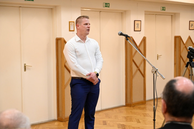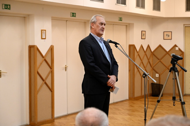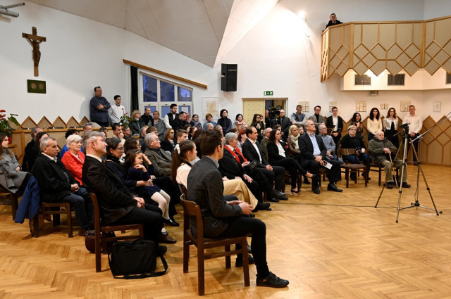 Harangozó Bertalan a KDNP nevében szólt a megjelentekhez. Megköszönte a művészeknek, hogy elfogadták a támogatásukat a kiállítás megrendezésére, amihez az egyházmegye is hozzájárult.