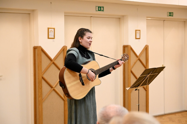 Végezetül Tóth Csaba Munkácsy-díjas festőművész megnyitójában Joseph Ratzingert, a későbbi XVI. Benedek pápát idézte, aki a liturgia szelleme című könyvében beszél a kép, a képzőművészet válságáról: „Ma nemcsak a szakrális művészetnek, hanem általában a művészetnek egy korábban ismeretlen méretű krízisét éljük át. A művészet válsága pedig azon emberlét krízisének a tünete, mely éppen az anyagi világ fölött való uralkodás legszélsőségesebb fokozásában olyan helyzetbe került, ahol az ember az anyagi természetű dolgokat meghaladó tájékozódási kérdések tekintetében vakká vált; ezt az állapotot lelki megvakulásként jellemezhetjük.” Épp ezért a négy fiatal kiállító, akik az ELTE Berzsenyi Dániel Pedagógusképző Központ hallgatói, a legnehezebbet választották, mivel a felvilágosodás óta a szakrális művészetet kiközösítették a mindenkori kortárs kultúrából...