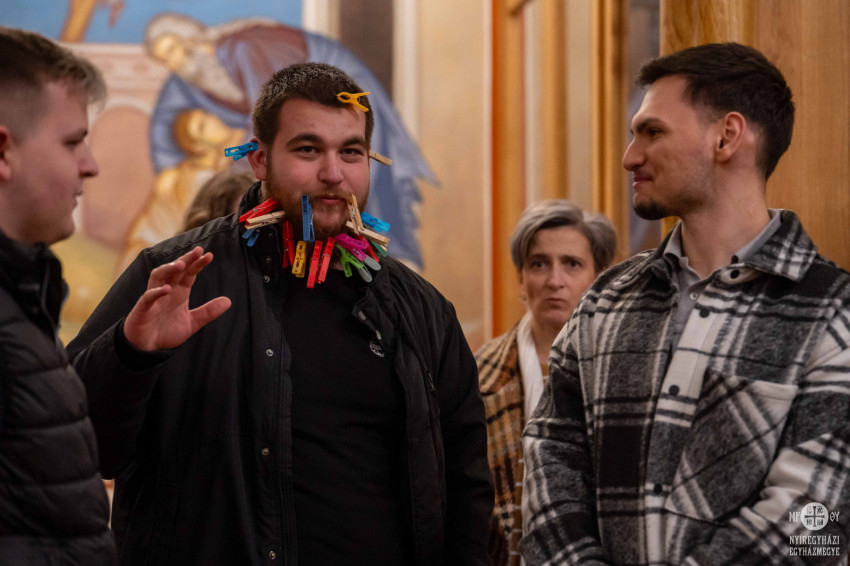 Grunda Dávid atya, a Korányi Frigyes Görögkatolikus Általános Iskola, Gimnázium és Kollégium lelki igazgatója ismerkedős és önismereti játékokkal indította az estet – bevonva eszközként a mindenkinél kéznél lévő okostelefonokat is.