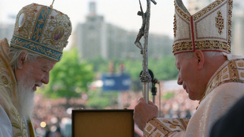 A katolikus egyházfő 1999-es látogatása azt követően vált lehetségessé, hogy a helyi ortodox és katolikus egyház félre tudta tenni a vitás kérdéseket, amelyek abból fakadtak, hogy a kommunisták 1948-ban elvettek több ezer templomot a katolikus egyháztól, és ortodox egyházközségeknek adták őket.