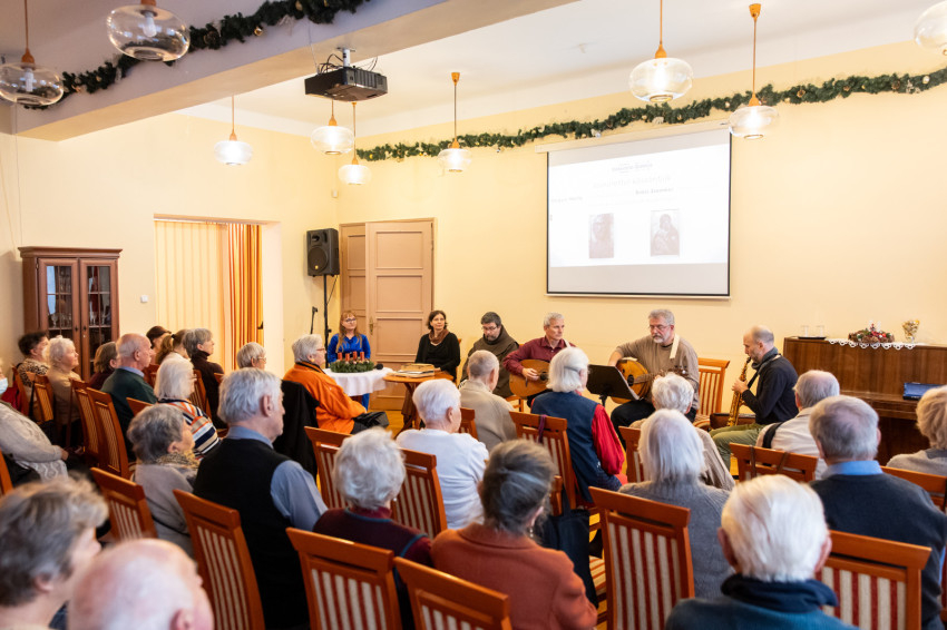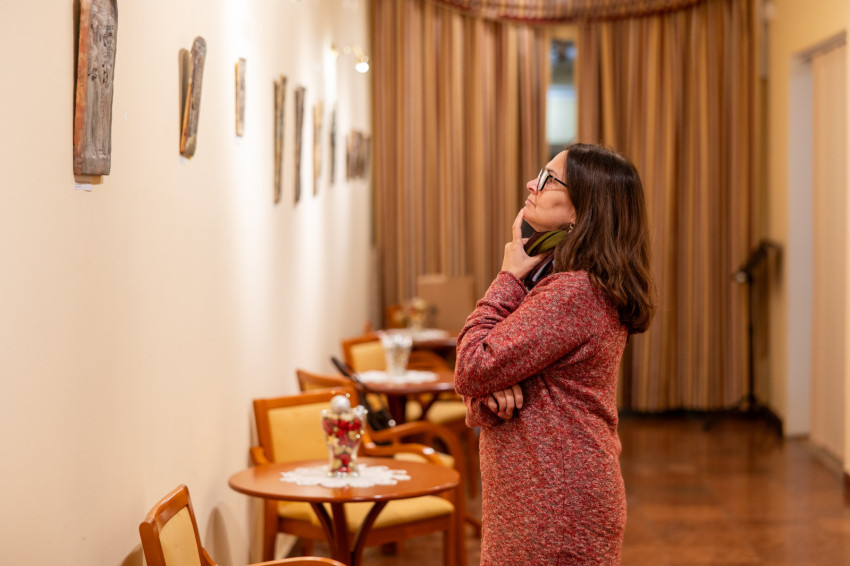 Az Óbudai Szociális Szolgáltató Intézmény dísztermében rendezték meg december 2-án a teltházas kiállításmegnyitót; a díszterem melletti folyosó a voltaképpeni kiállítótér, ahol két művész: egy iparművész édesanya és egy szerzetes alkotásai felelnek egymásnak.