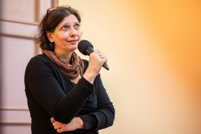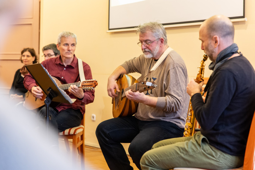 Ezt követően a hallgatóság kapott lehetőséget kérdezni, majd a két művész bemutatta néhány kiállított alkotását.