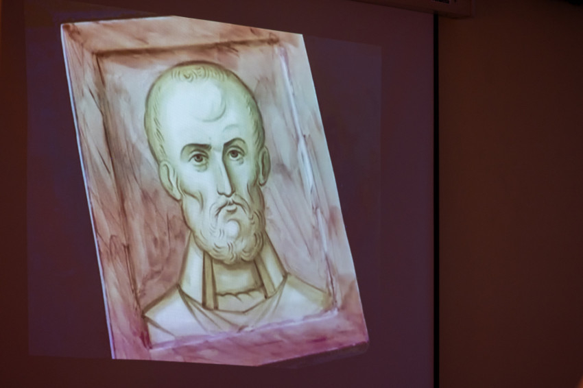 Végül Zsombor atya is vetített egy videót, amely szemléletesen bemutatta az ikonfestés folyamatát – mivel közeledik Szent Miklós ünnepe, egy róla készült ikon munkafázisait láthattuk.