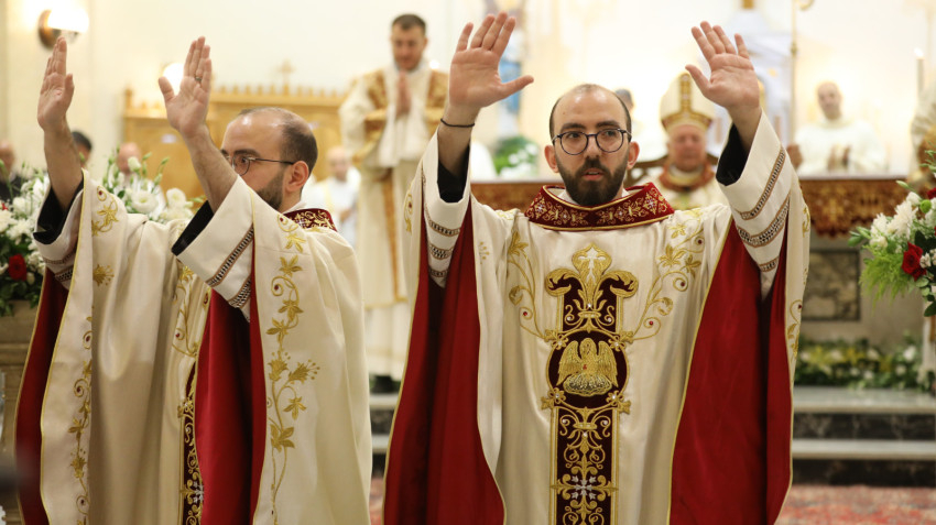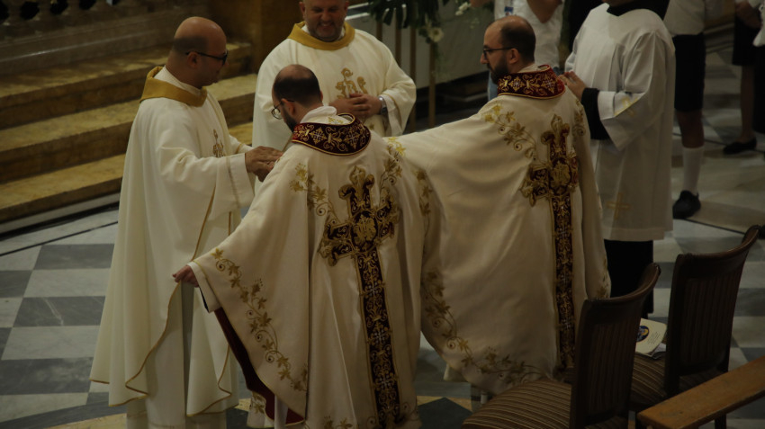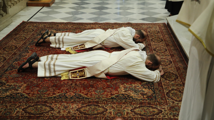 A homília után következett a papszentelés szertartása: a két testvér egymás mellett feküdt a Mindenszentek litániája alatt, melyben szerepeltek a damaszkuszi vértanúk is, akiknek július 10-én van az emléknapja, és akiket idén október 20-án avatnak szentté.