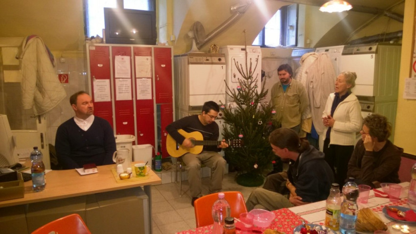December 21-én tizennégy vendég részvételével tartották a melegedő karácsonyi ünnepségét, amelyre egyformán meghívták a VII. kerületi lakosokat és hajléktalan embereket. A karácsonyi ebédre tervezett gulyáslevest egy vállalkozó házaspár készítette, és szállította el az intézménybe. Az ízletes, házi leves mellé diós- és mákos bejglit, szaloncukrot, üdítőt és ásványvizet szolgáltak fel, amit mindenki nagy megelégedéssel fogadott. Egy zenész és zenetanár hölgy, aki régebben önkéntes segítőként tevékenykedett a kerületi szervezetnél, hangszeres műsort szervezett a vendégek számára. Játszott gitáron, fuvolázott, és dalaiba sikerült bevonnia a jelenlévőket is. Ezt követően felolvasták Krisztus születéstörténetét, majd ismét közös éneklés következett.