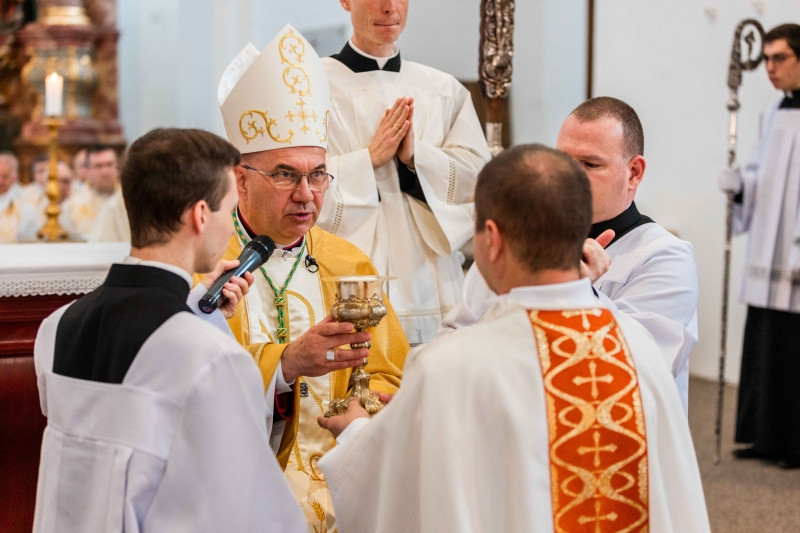Végül újmisés áldásban részesítették a megyéspüspököt. Megható pillanat volt, amikor – a hagyományt követve – a püspök kezet csókolt fiatal paptestvéreinek. A zárókönyörgésben a püspök a Szentlélek ajándékait kérte az újmisések számára, és azt, hogy minden áldozatuk legyen Krisztusnak tetsző, életük pedig áldás azok számára, akiket szolgálnak.