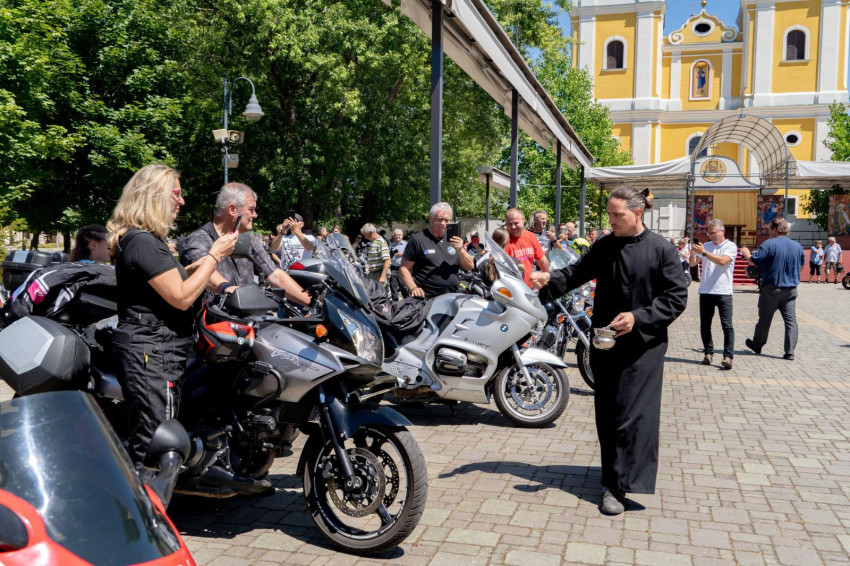 „Utazz együtt e motorosokkal is, minden ellenséges vihart megfékezvén támassz kedvező időket, mindenhol légy vezetőjük, és hárítsd el tőlük minden kísértés ármányát” – szólt az imádság, majd Szirmai Máté szenteltvízzel hintette meg a motorokat és motorosokat, akik gázfröccsel köszönték meg az áldást.