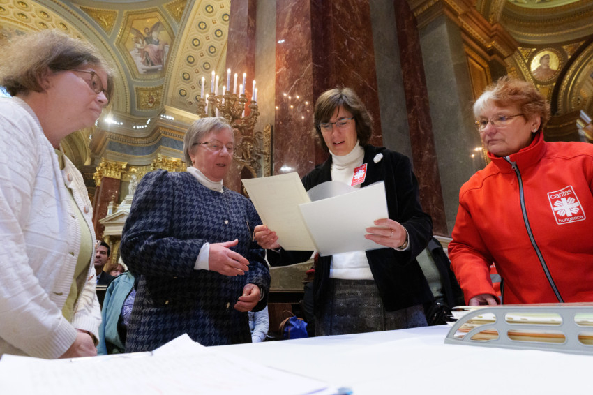 A lelkinap a hálaadás jegyében ért véget: a karitászközpont emléklapokkal köszöntötte azokat az önkénteseket, akik öt, tíz, tizenöt, húsz, huszonöt, harminc, harmincöt, negyven vagy akár immár negyvenöt éve szolgálják az Urat a szegényekben, a plébániai karitászcsoportok tagjaiként.