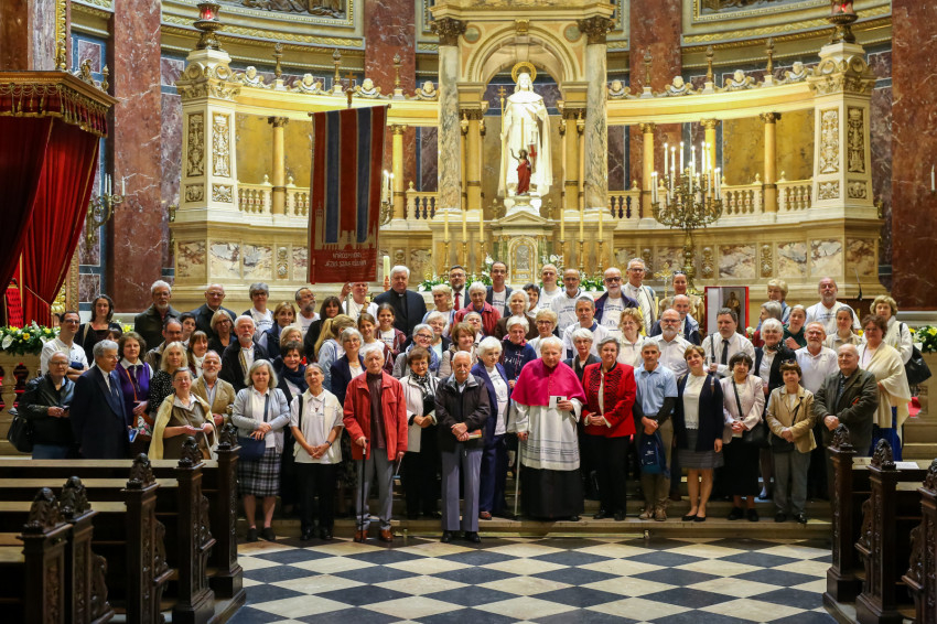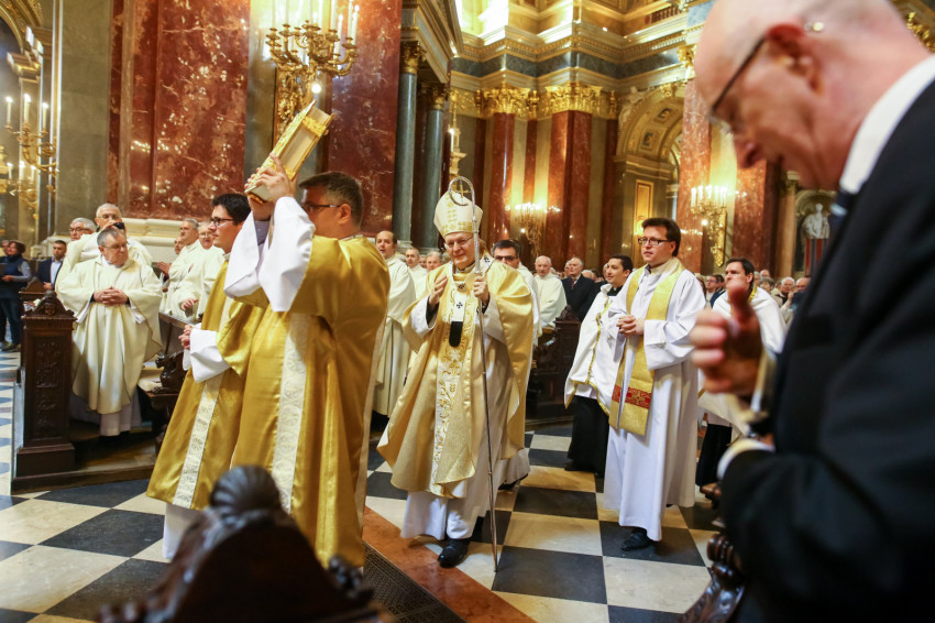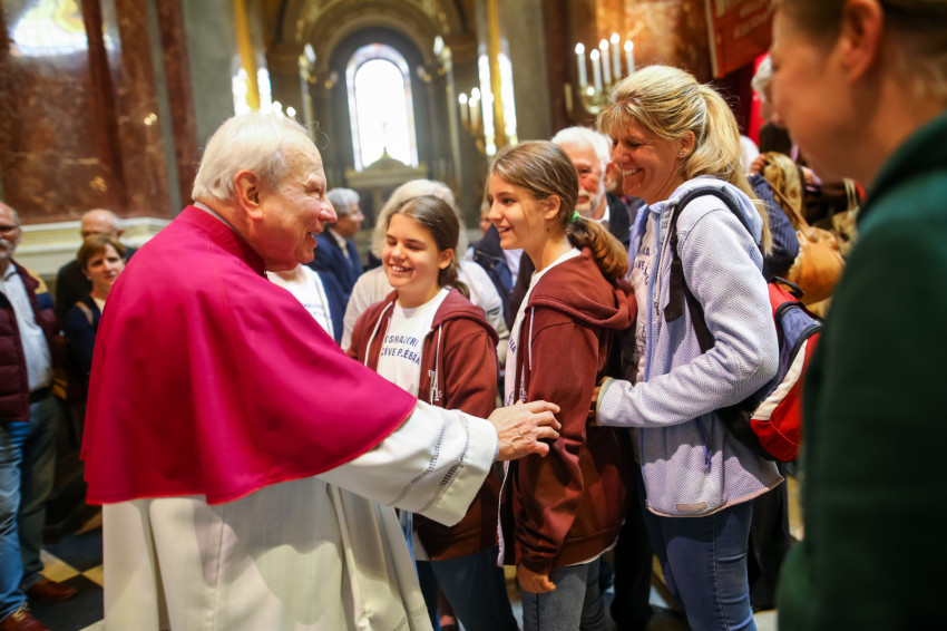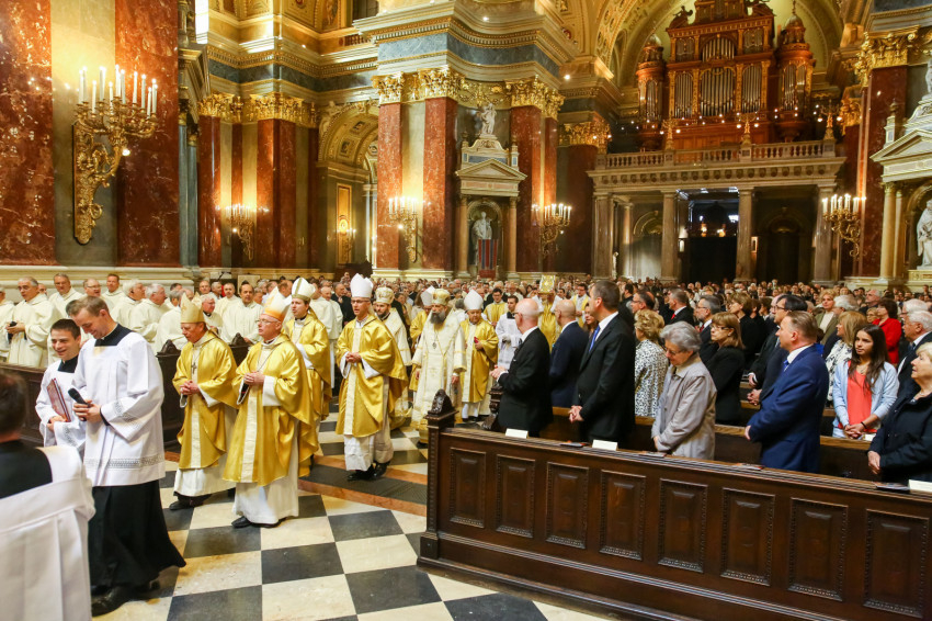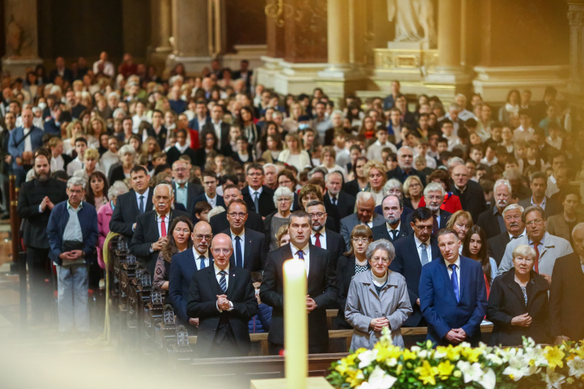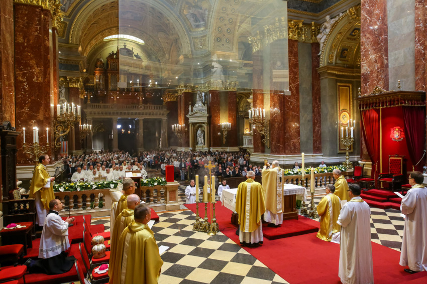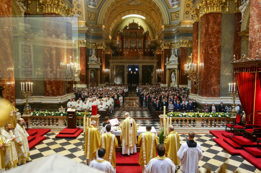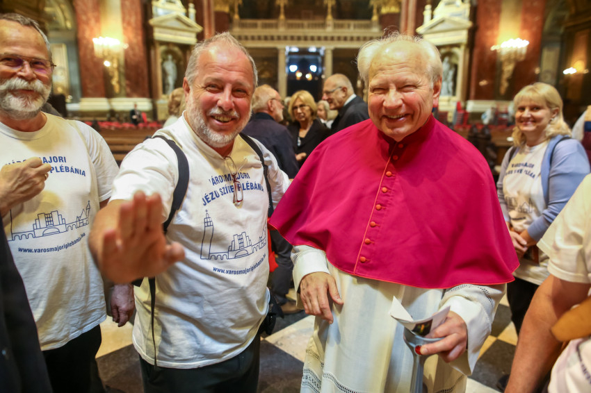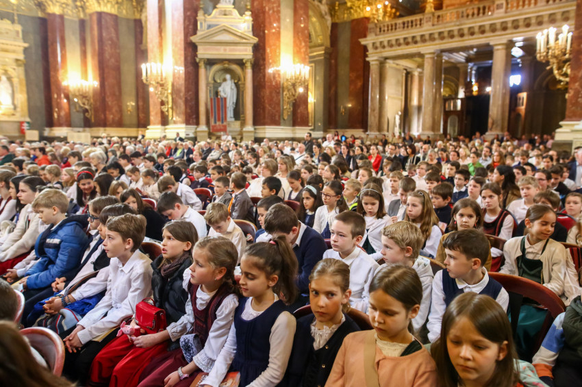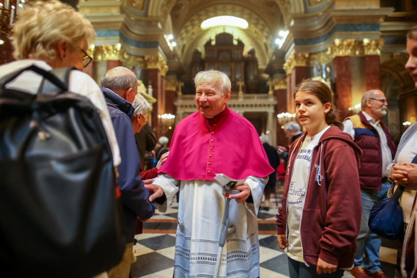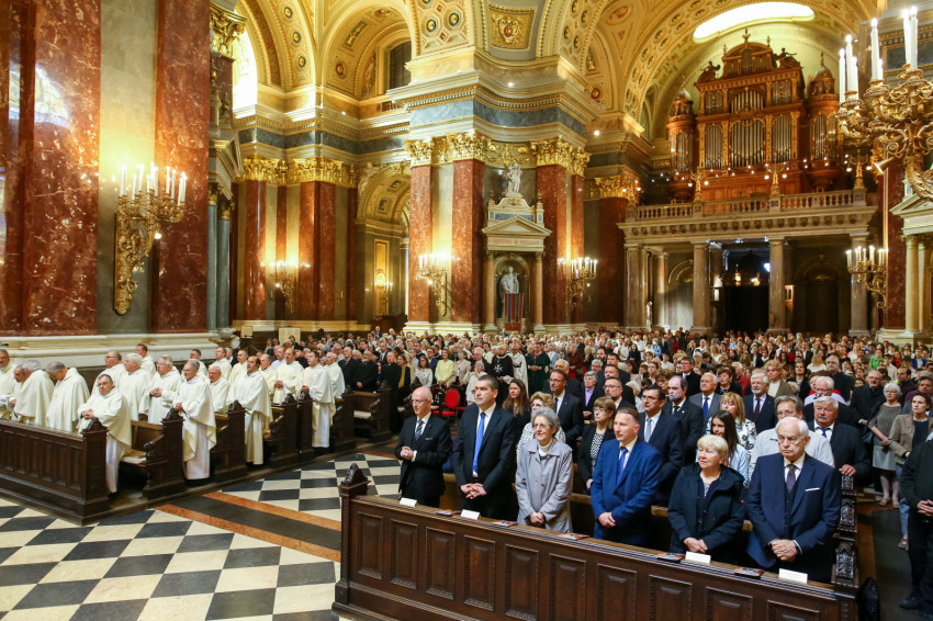 A Szent István-bazilika még a pápalátogatás díszeiben fogadta a zarándokokat. Nagy számban érkeztek iskolai csoportok, köztük a hagyományokat követve a Pannonia Sacra Katolikus Általános Iskola közössége – az intézmény duplán ünnepel, hiszen egyfelől most megemlékeztek az iskola alapításának, működésének támogatójáról és lelki vezetőjéről, másfelől egy hét múlva megtartják kerékpáros zarándoklatukat is Esztergomba. Eljött a budapesti társszékesegyházba több Mindszenty József nevét viselő iskola tanulói és szülői közössége is.