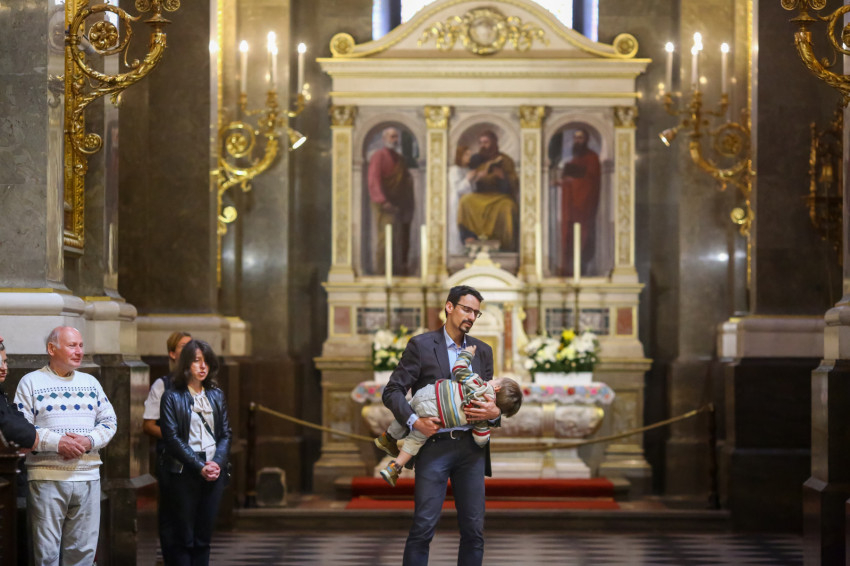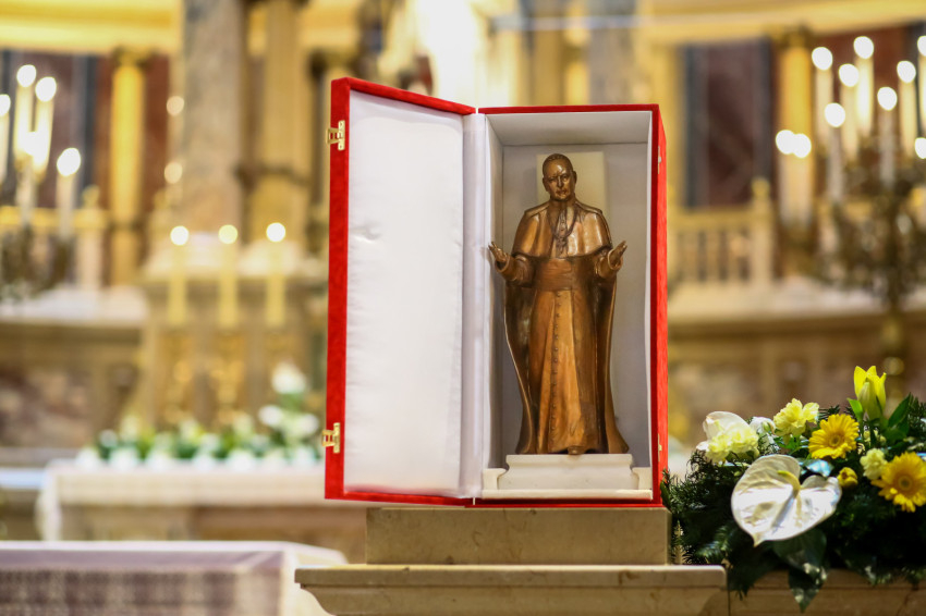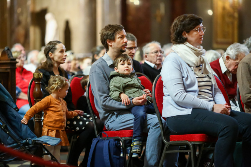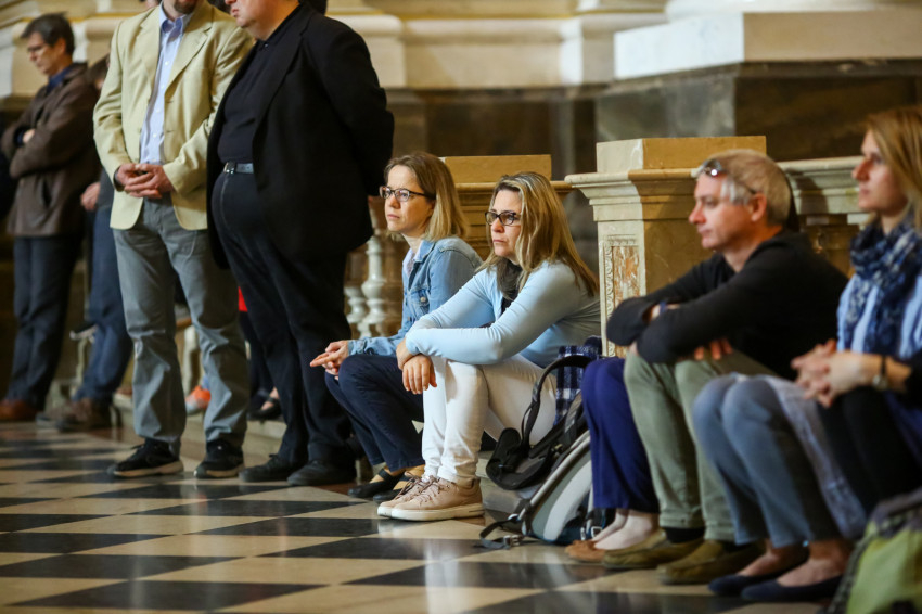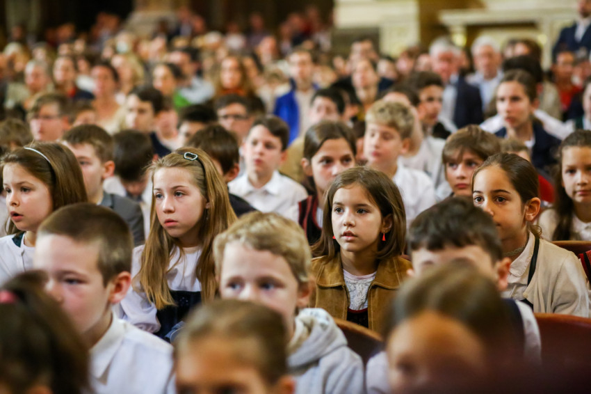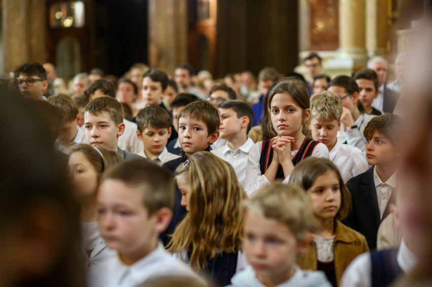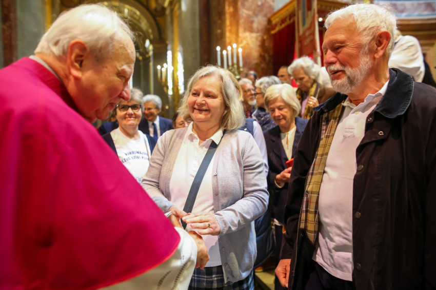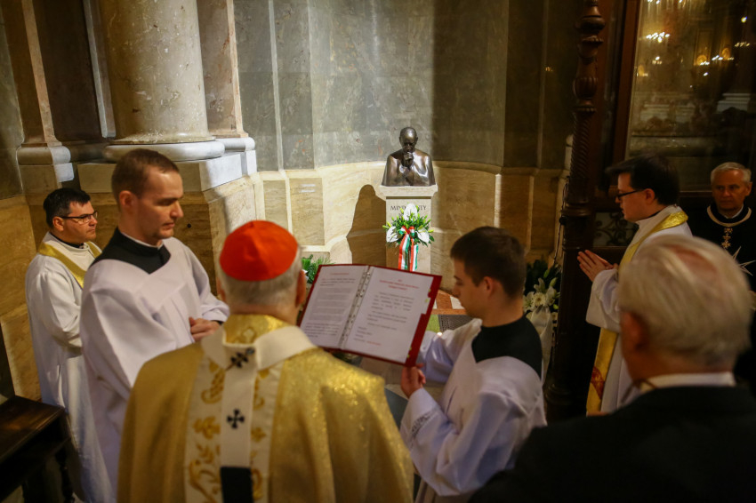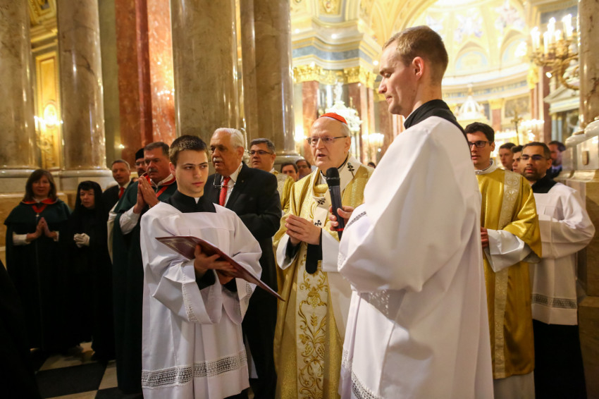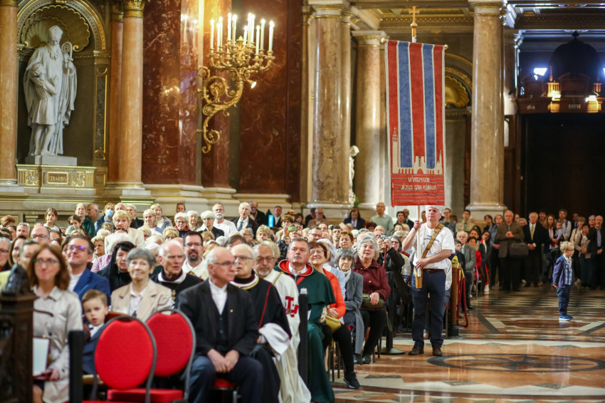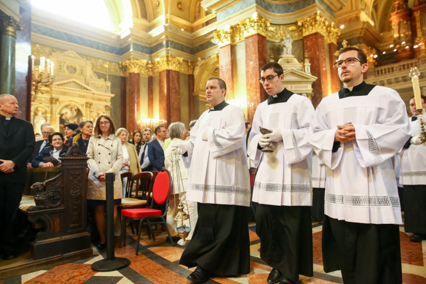 A Szent István-bazilika még a pápalátogatás díszeiben fogadta a zarándokokat. Nagy számban érkeztek iskolai csoportok, köztük a hagyományokat követve a Pannonia Sacra Katolikus Általános Iskola közössége – az intézmény duplán ünnepel, hiszen egyfelől most megemlékeztek az iskola alapításának, működésének támogatójáról és lelki vezetőjéről, másfelől egy hét múlva megtartják kerékpáros zarándoklatukat is Esztergomba. Eljött a budapesti társszékesegyházba több Mindszenty József nevét viselő iskola tanulói és szülői közössége is.
