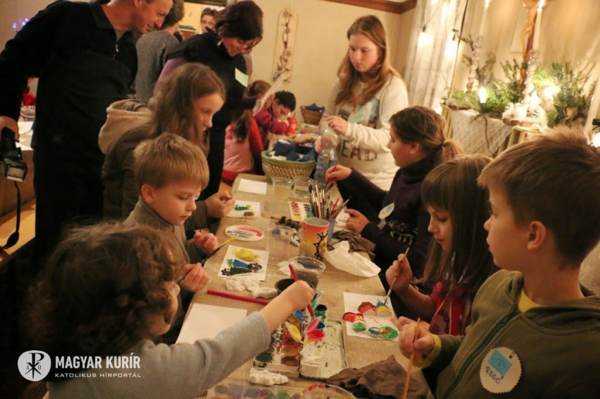 Négy órától a plébánia épületében családos játékokkal, adventi ajtódísz és mécses készítésével folytatódott a program. A plébánia úgy várta az egyházmegye számos pontjáról érkezőket, mint egy igazi nagycsalád a távolban élő gyermekeit: meghitten, szeretettel, ünneplőbe öltözve. Az egész este is úgy telt, mint egy bensőséges családi ünnep: míg a gyermekek a kisszobában játszottak, a szülők és nagyszülők a nappaliban társalogtak terített asztal mellett.